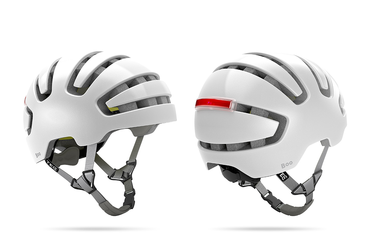 Boo was designed to attract young users to wear a helmet that looks less childish with a more skate aesthetic. During the development process, it became clear from experts that injuries to face and teeth is a big issue. Therefore, the helmet comes with an optional chin bar. The helmet comes with an integrated backlight to provide extra visibility in traffic.
