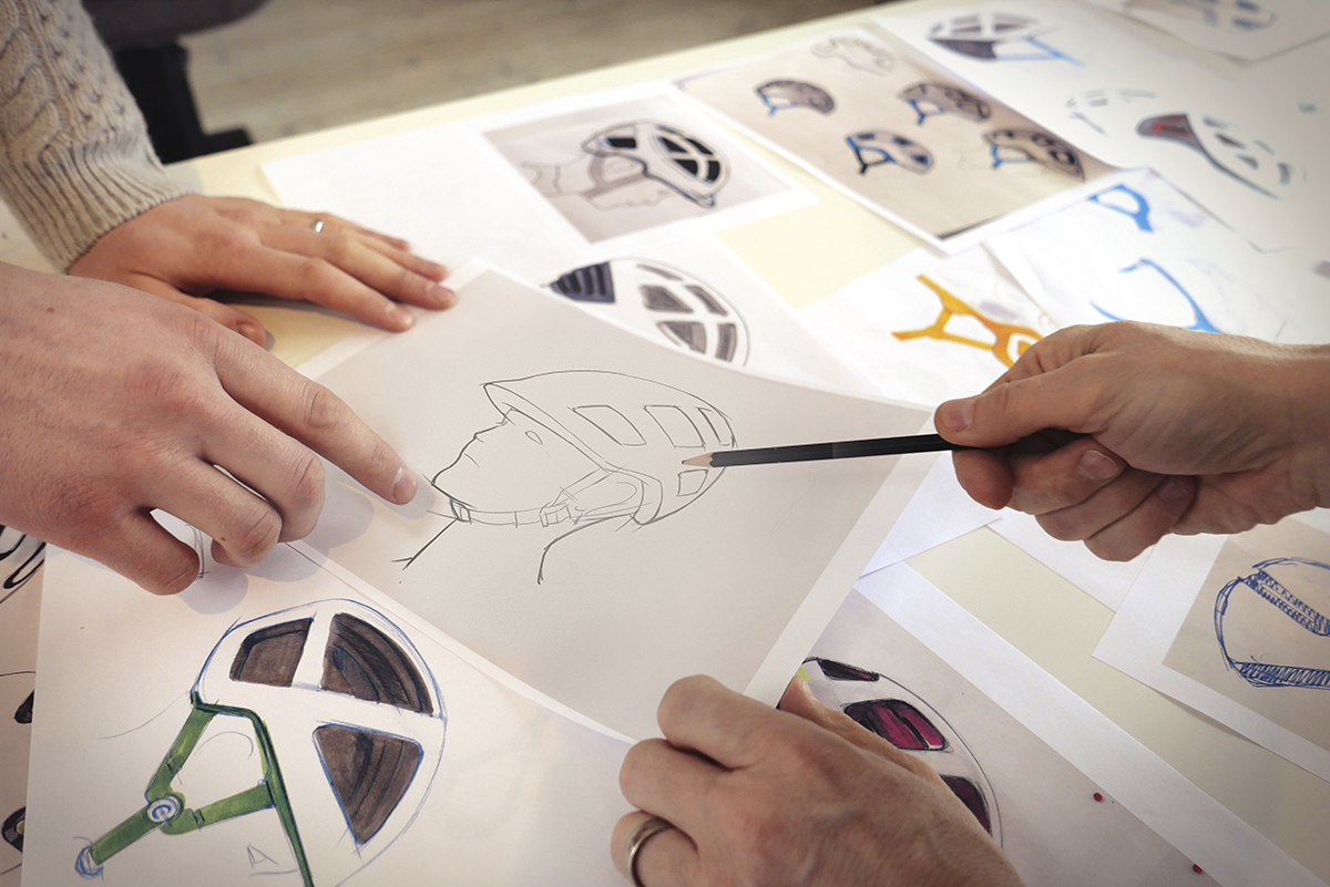 The helmet has a timeless, yet playful aesthetic that was achieved by combining aspects of scandinavian design with details that strengthen safety and comfort. The hole pattern is carefully considered to provide good ventilation and still match the minimalistic overall impression.